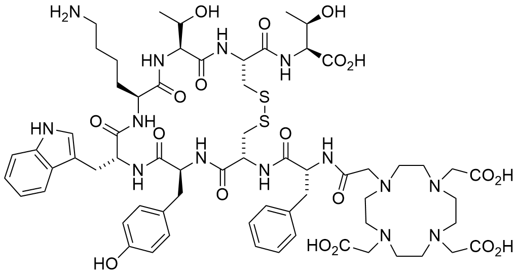 DOTA-D-Phe-Cys-Tyr-D-Trp-Lys-Thr-Cys-Thr-OH, cyclic disulfide; DOTA = N-[[4,7,10-tris(carboxymethyl)-1,4,7,10-tetraazacyclododec-1-yl]acetyl]-; Supplied as acetate salt