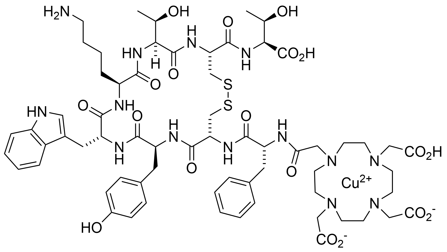 Sequence: DOTA(Cu)-D -Phe-Cys-Tyr-D-Trp-Lys-Thr-Cys-Thr-OH, cyclic disulfide Cys^2,7,DOTA = 2-[4,7,10-Tris-(carboxymethyl)-1,4,7,10-tetraazacyclododecan-1-yl]-acetyl; supplied as acetate salt