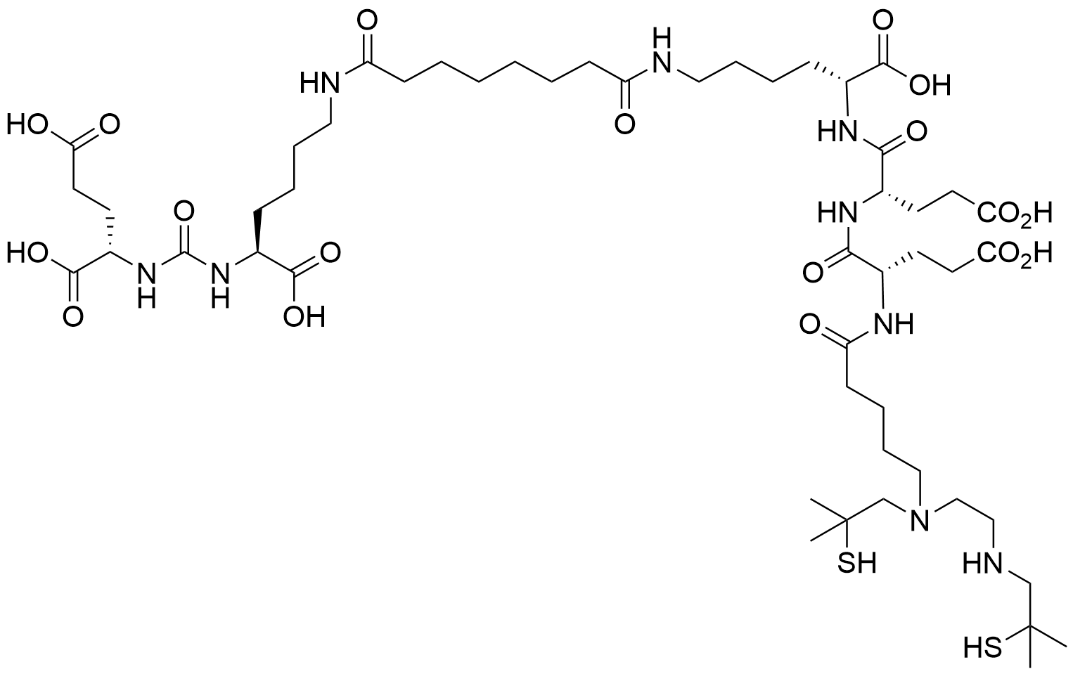 Sequence: Glu-CO-Lys-[(Sub)-DLys-Glu-Glu-BAT] (BAT: 5-((2-mercapto-2-methylpropyl)(2-((2-mercapto-2-methylpropyl)amino)ethyl)amino)pentanoic acid; Sub: suberic acid)