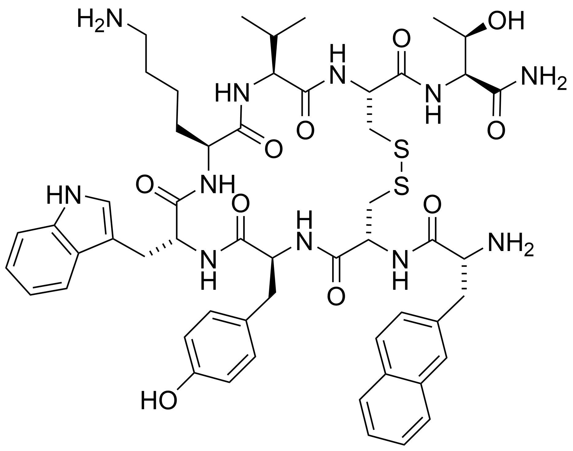 Sequence: H-D-2Nal-Cys-Tyr-D-Trp-Lys-Val-Cys-Thr-NH₂, cyclic disulfide