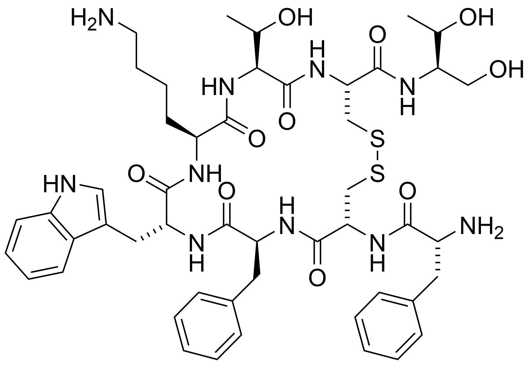 Sequence: H-D-Phe-Cys-Phe-D-Trp-Lys-Thr-Cys-Thr(ol), cyclic disulfide; Supplied as acetate salt