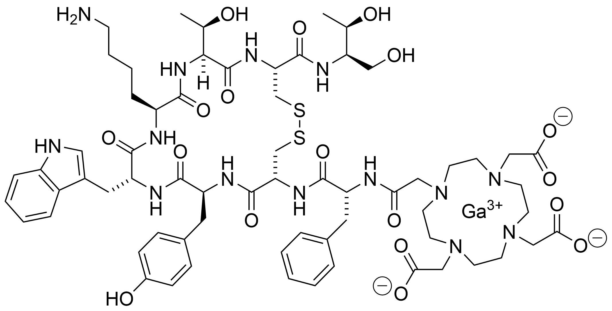 Sequence: DOTA(Ga)-D-Phe-Cys-Tyr-D-Trp-Lys-Thr-Cys-Thr(ol), cyclic disulfide.