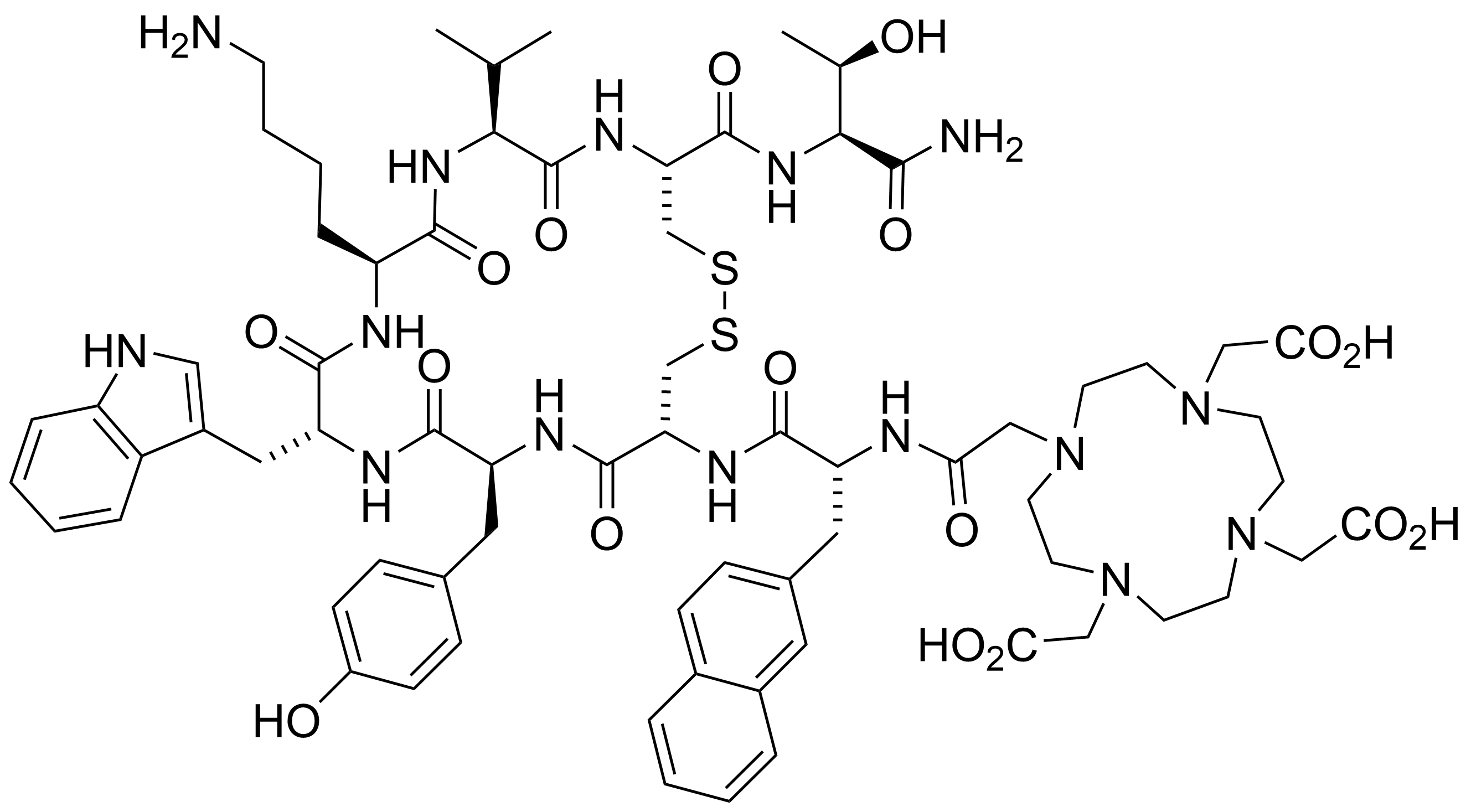 Sequence: DOTA-D-2Nal-Cys-Tyr-D-Trp-Lys-Val-Cys-Thr-NH₂, cyclic disulfide; DOTA = N-[[4,7,10-tris(carboxymethyl)-1,4,7,10-tetraazacyclododec-1-yl]acetyl]-; Supplied as acetate salt