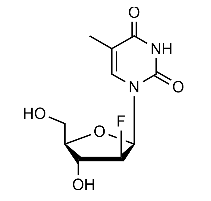 1-(2-Fluoro-2-deoxy-β-D-arabinofuranosyl)thymine; 1-(2-Deoxy-2-fluoro-β-D-arabinofuranosyl)-5-methyl-2,4(1H,3H)-pyrimidinedione; 1-(2-Deoxy-2-fluoro-β-D-arabinofuranosyl)-5-methyluracil; 2'-Fluoro-5-methyl-arabinosyluracil; 2'-Fluoro-5-methyl-β-D-arabinofuranosyluracil; 1-[(2R,3S,4R,5R)-3-Fluoro-4-hydroxy-5-(hydroxymethyl)oxolan-2-yl]-5-methylpyrimidine-2,4-dione; 5-Methyl-1-[(2R,3S,4R,5R)-3-fluoro-4-hydroxy-5-(hydroxymethyl)oxolan-2-yl]pyrimidine-2,4-dione; 5-Methyl-1-(2-fluoro-2-deoxy-β-D-arabinofuranosyl)uracil; 1-(2-Deoxy-2-fluoro-β-D-arabinofuranosyl)-5-methyl-2,4(1H,3H)-pyrimidinedione; β-FMAU; β-D-FMAU