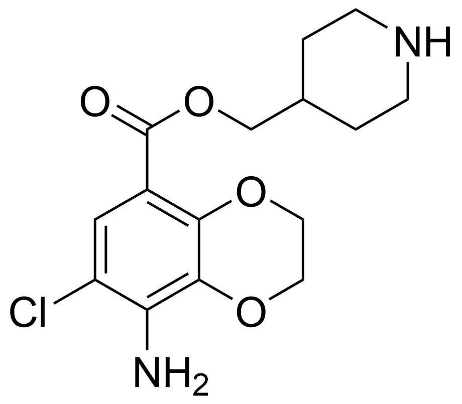 CA index name: 1,4-Benzodioxin-5-carboxylic acid, 8-amino-7-chloro-2,3-dihydro-, 4-piperidinylmethyl ester