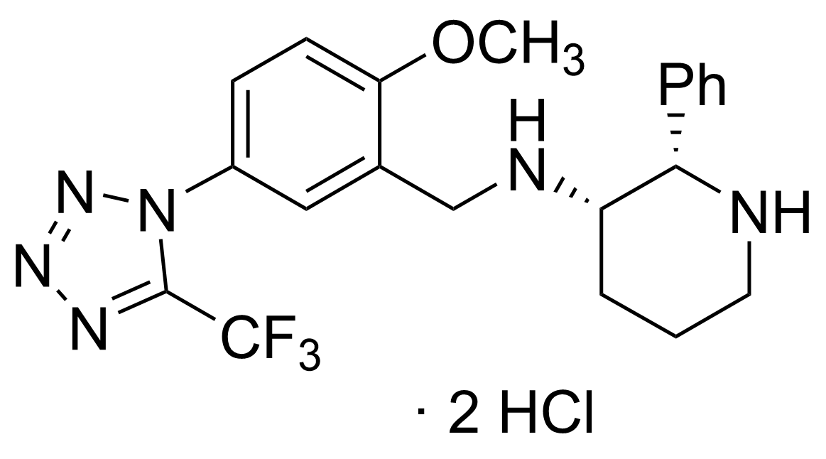 CA index name: 3-Piperidinamine, N-[[2-methoxy-5-[5-(trifluoro-methyl)-1H-tetrazol-1-yl]phenyl]methyl]-2-phenyl-, dihydrochloride, (2S,3S)-