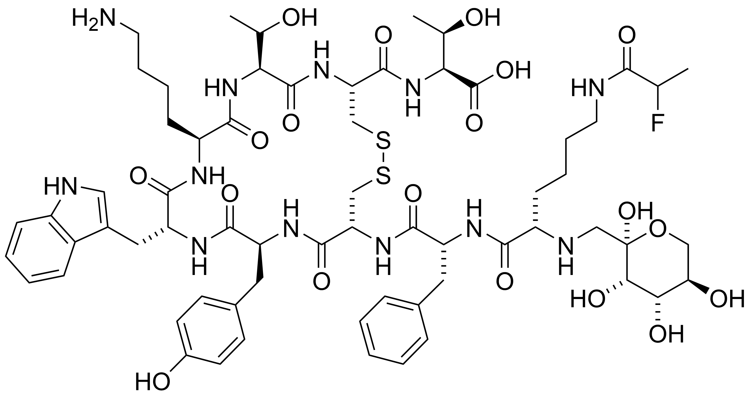 Sequence: (1-deoxy-D-fructosyl)-Lys(2-fluoropropionyl)-D-Phe-Cys-Tyr-D-Trp-Lys-Thr-Cys-Thr-OH, cyclic disulfide
