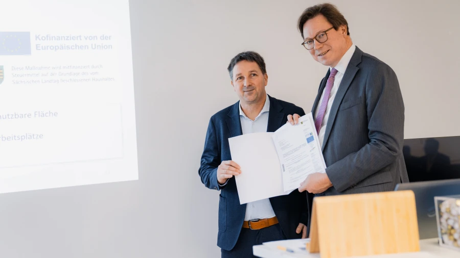 Minister for the Environment and Agriculture Georg Ludwig von Breitenbuch Visits ABX Site in Radeberg to Present Funding Approval
