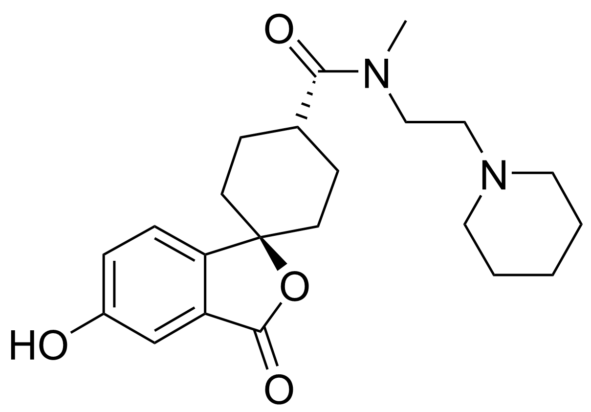 Spiro[cyclohexane-1,1'(3'H)-isobenzofuran]-4-carboxamide, 5'-hydroxy-N-methyl-3'-oxo-N-[2-(1-piperidinyl)ethyl]-, (1α,4β)-