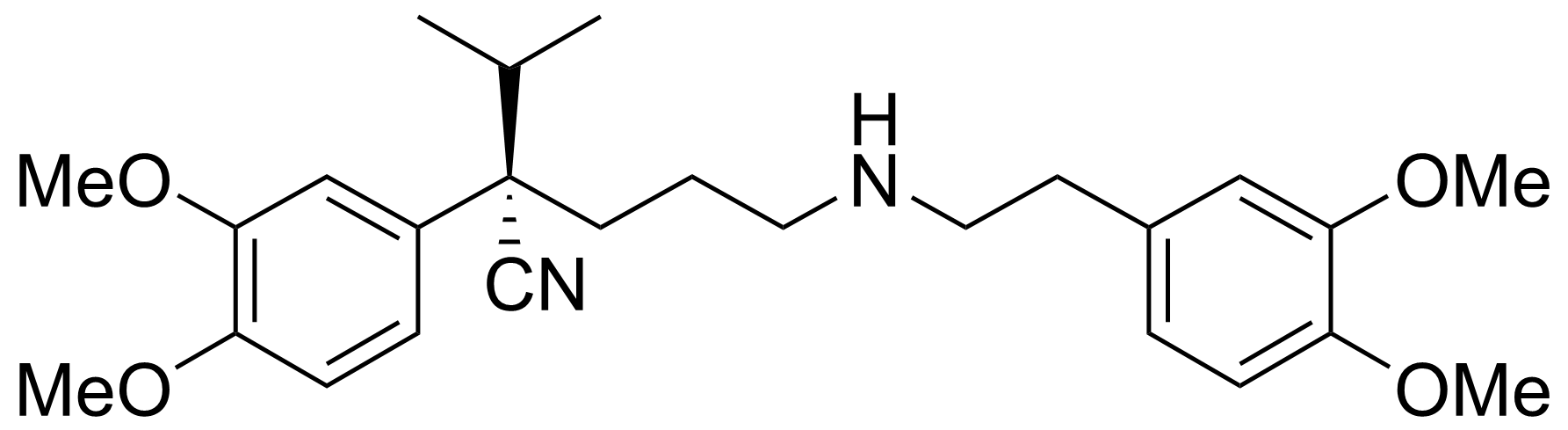CA index name: Benzeneacetonitrile, α-[3-[[2-(3,4-dimethoxyphenyl)-ethyl]amino]propyl]-3,4-dimethoxy-α-(1-methylethyl)-, (αS)-