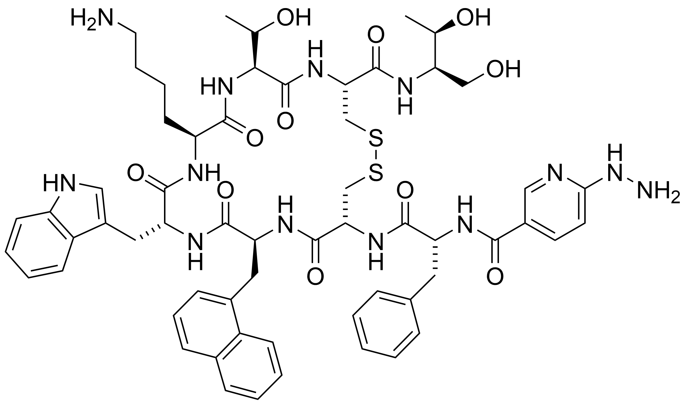 Sequence: HYNIC-D-Phe-Cys-1Nal-D-Trp-Lys-Thr-Cys-Thr(ol), cyclic disulfide