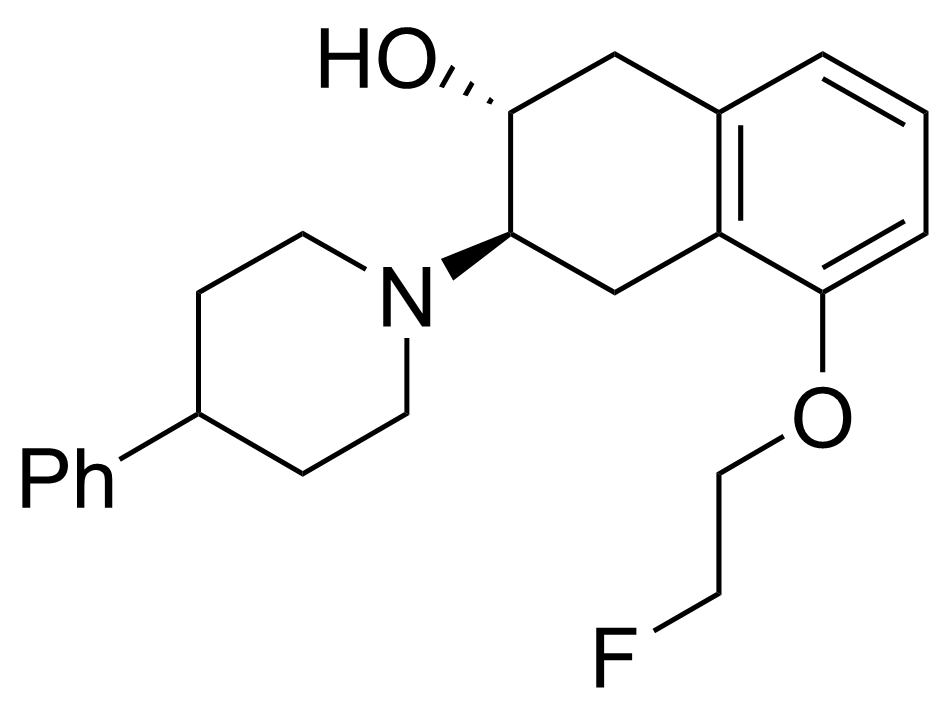 CA index name: 2-Naphthalenol, 5-(2-fluoroethoxy)-1,2,3,4-tetrahydro-3-(4-phenyl-1-piperidinyl)-, (2R-trans)-
