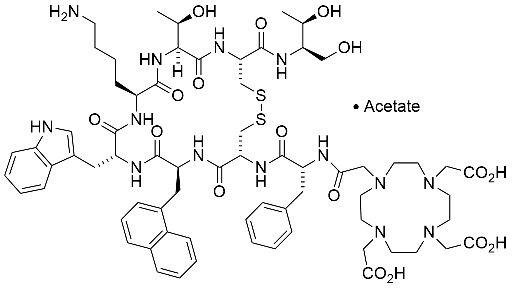Sequence: DOTA-D-Phe-Cys-Nal-D-Trp-Lys-Thr-Cys-Thr(ol), cyclic disulfide Cys2,7 DOTA = N-[[4,7,10-tris(carboxymethyl)-1,4,7,10-tetraazacyclododec-1-yl]acetyl]- Nal = 3-(1-naphthalenyl )-L-alanyl Supplied as acetate salt
